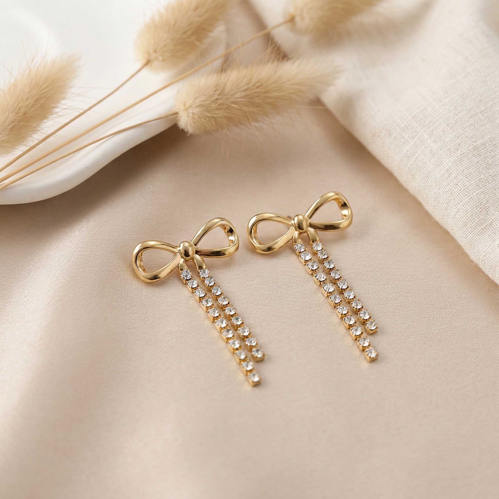 Diamond Bow Drop Earrings